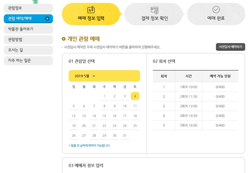 천천히 날짜 선택하고 회차 선택하고 인원도 선택