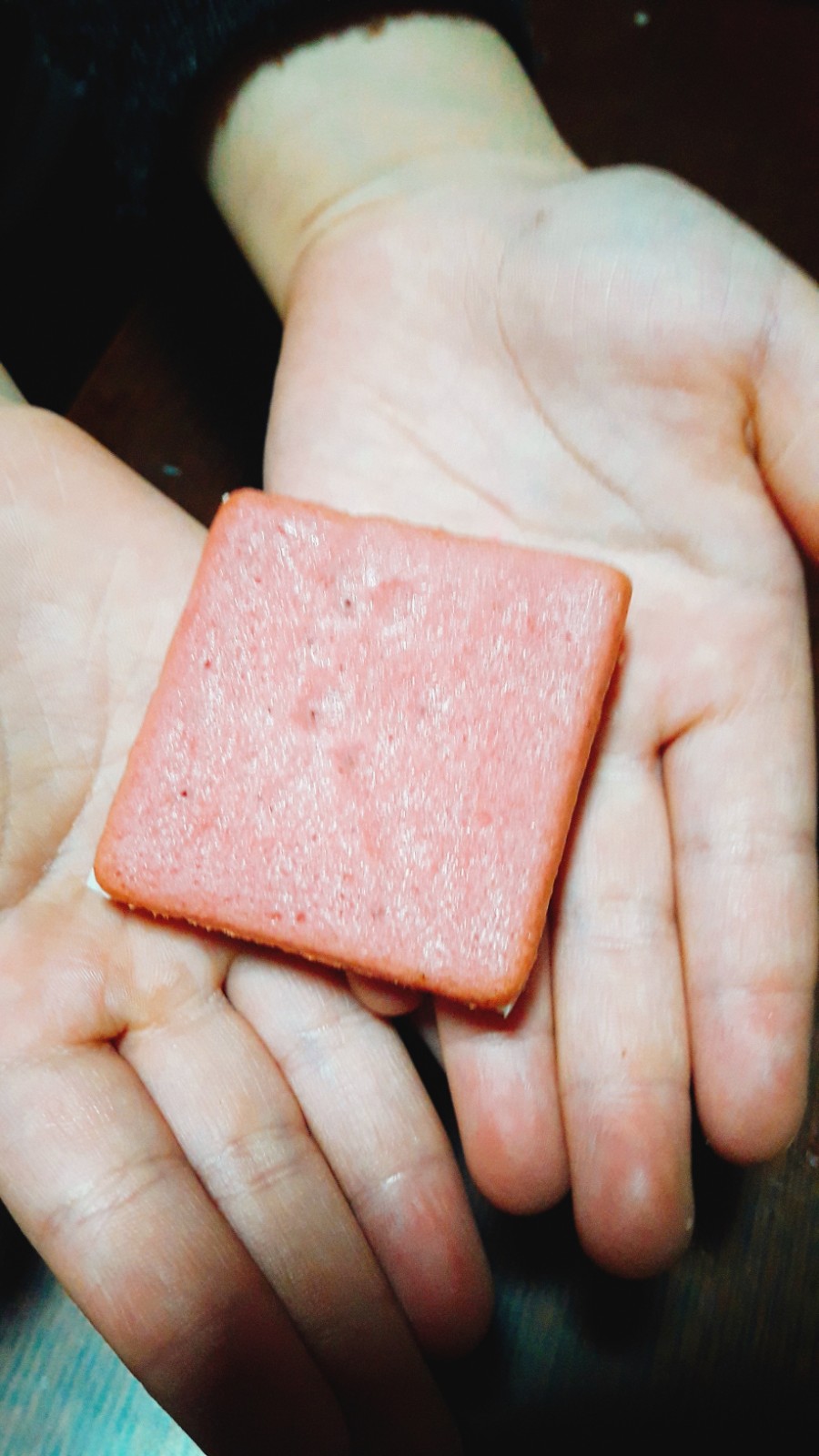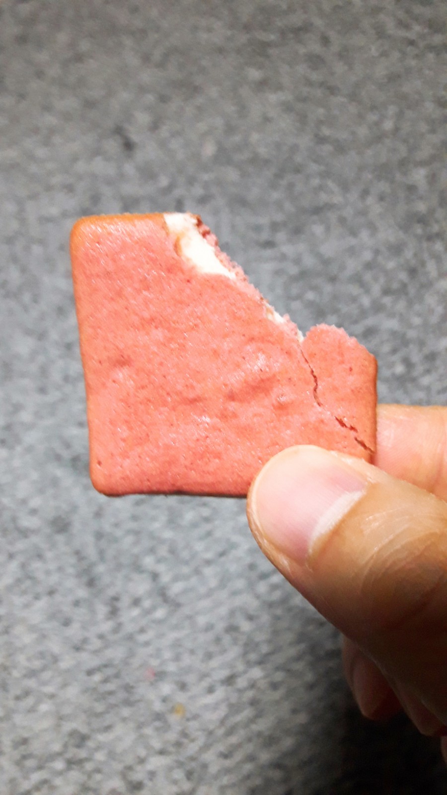 포장을 뜯어보면 사각형 모양의 쿠키가 나타납니다. 쿠키도 예쁘게 생겼네요.